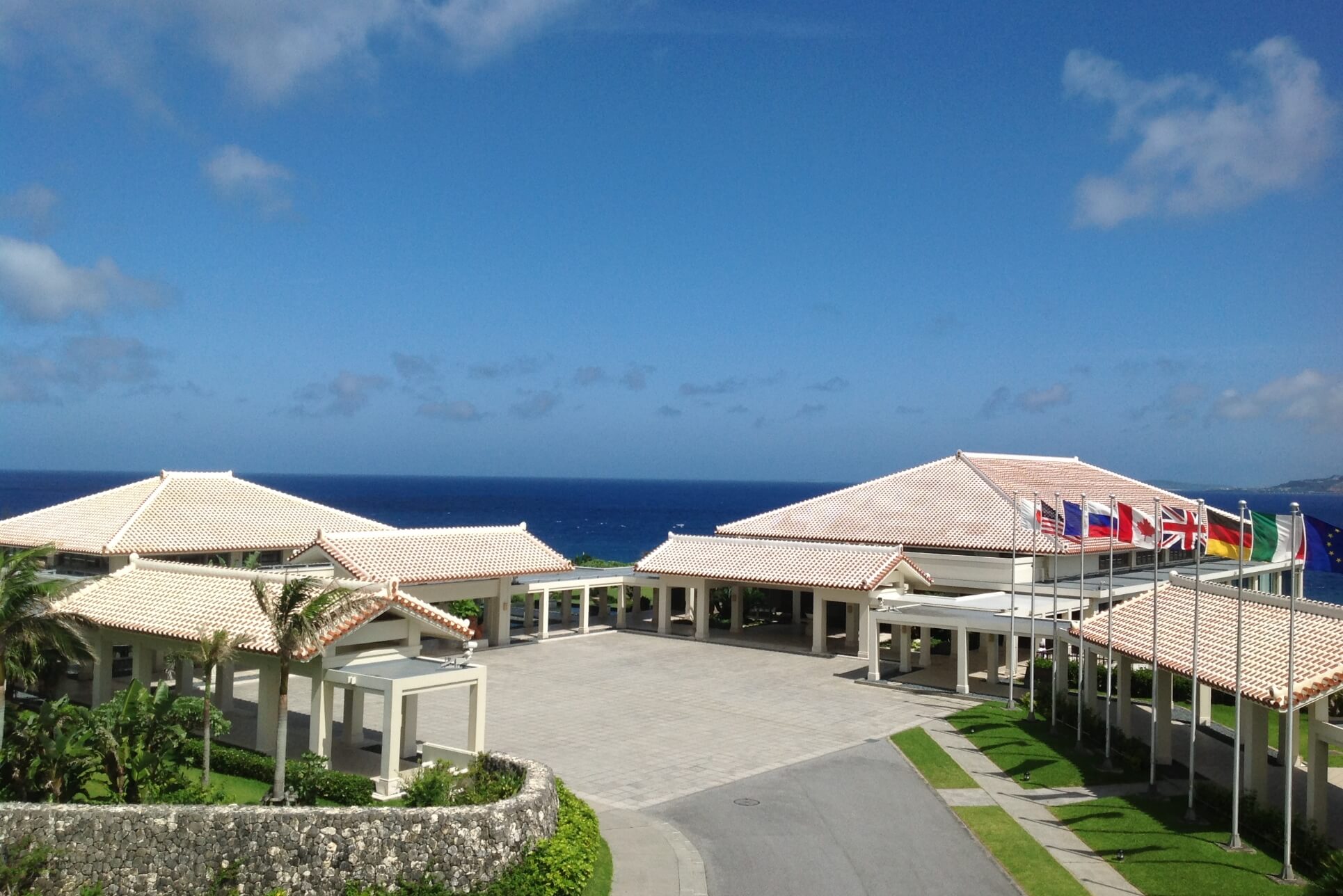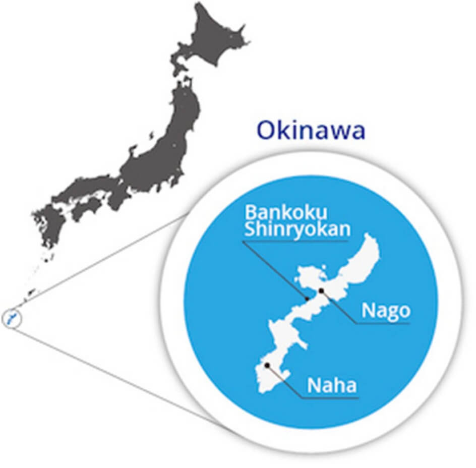 Bankoku Shinryokan is situated on Busena Point, one of the most scenic locations in Okinawa, near Nago City. The name “Bankoku Shinryo,” meaning “Bridge Between Nations,” originates from an inscription on a large bell at Shuri Castle, the former royal palace of the Ryukyu Kingdom. Since its opening in 2000, the facility has hosted numerous prestigious events, including the G8 Summit that same year. Bankoku Shinryokan is approximately two hours from Naha International Airport by airport bus.