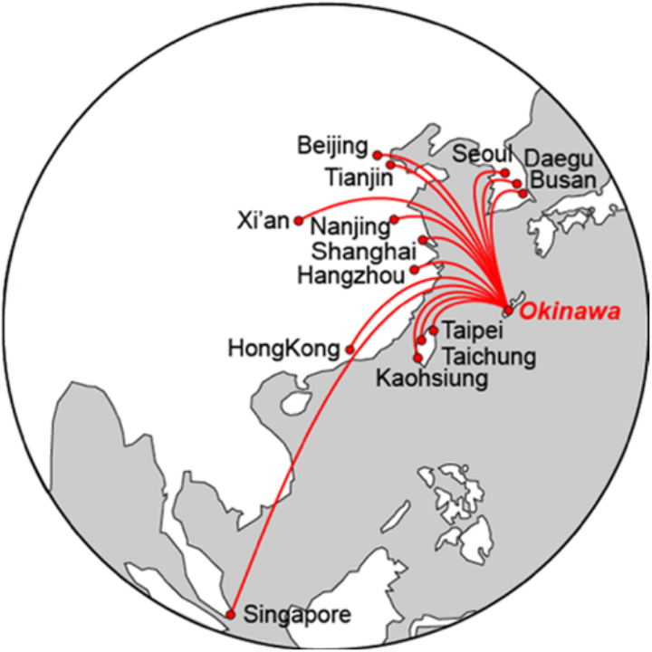 Many Asian airlines operate regular flights to Naha, Okinawa’s main airport, from major cities in China, Hong Kong, South Korea, Taiwan, Singapore and Thailand. Naha is also well connected to other cities in Japan, with several airlines offering multiple daily flights from Tokyo (Haneda and Narita airports), Osaka (Kansai and Itami airports), and Nagoya. For detailed flight information, please visit the Naha Airport official website.