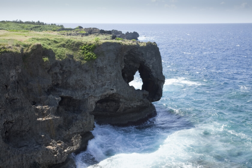 - Cape Manzamo is a place noted for its superb views of the clear Okinawan Sea. The limestone cliffs are also home to a popular tourist destination, a rock shaped like an elephant’s trunk that was formed when a coral reef rose.
