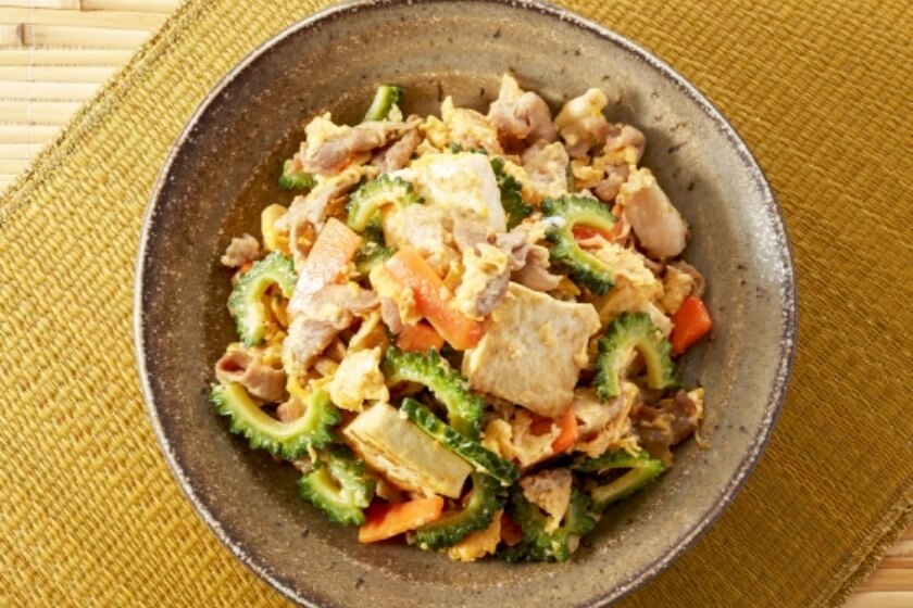 - Champuru, which means “stir fry” in the Okinawan language,is a dish that is prepared by stir frying various ingredients. The most popular champuru is goya champuru, in which the bitter goya (bitter melon) is stir fried with tofu, eggs, and pork or spam.