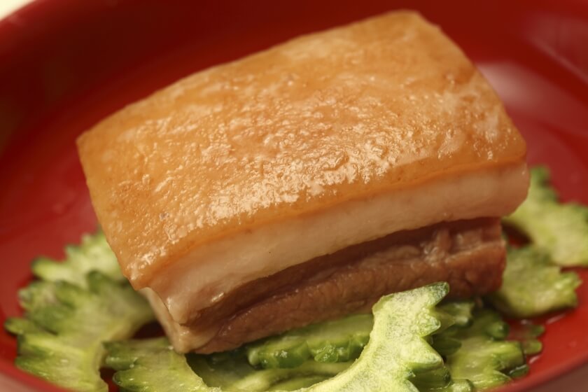- Pork is the most popular meat in Okinawa. Every part of the pig is used, from pig’s feet (Tebichi) and pig’s ears (Mimiga) to pork tripe. Rafute refers to thick cuts of pork belly boiled to be very soft. Some Okinawan restaurants also feature goat meat,which can even be served raw.
